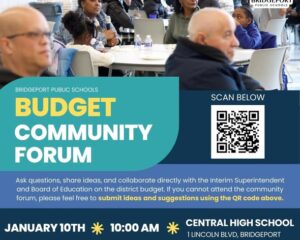 Bridgeport Public Schoolsis inviting the community to take part in a Budget Community Forum on January 10 at 10 AM at Central High School.